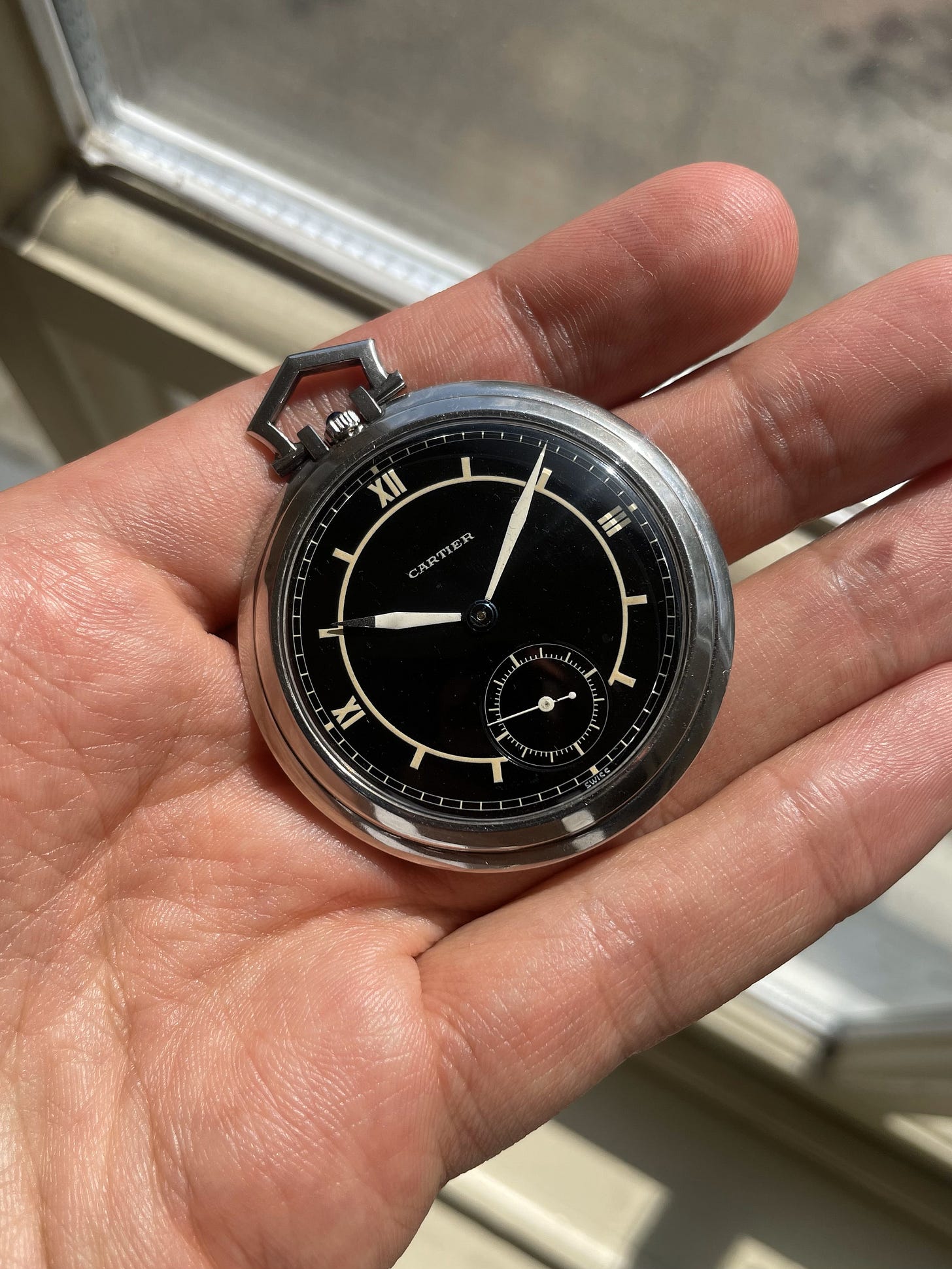 “A very special Cartier pocket watch in steel, from the early 1930s, retailed by Cartier New York, with a jaw-dropping black sector dial. Fortunately, it went to a very good collection in New York, so I know where it is, but I highly doubt I’ll ever be able to buy it back.”