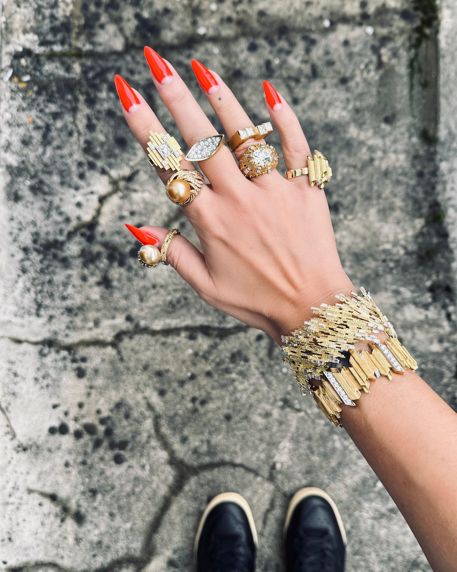 Early on, she was determined to break away. "I was young, naive and headstrong. I wanted to make jewelry that looked nothing like his." But over time, she embraced the inheritance: the design language, the attitude, the irreverence. "If anyone has the right to be shaped by that legacy, it's me."